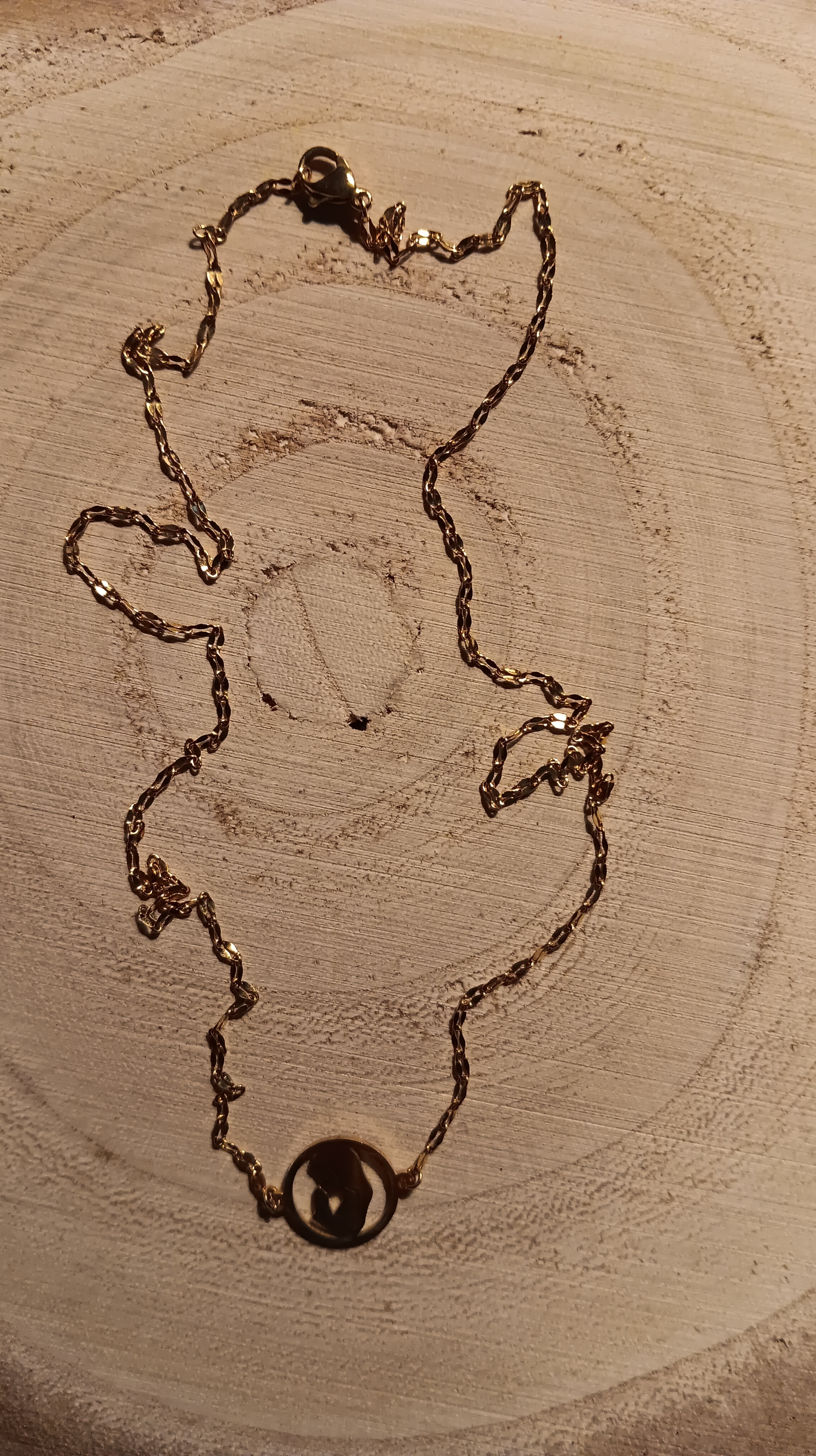 Sa chaîne fine et lumineuse met en valeur un médaillon rond au design épuré représentant une femme, idéal pour apporter une touche chic à votre tenue, au quotidien comme lors d’occasions spéciales.